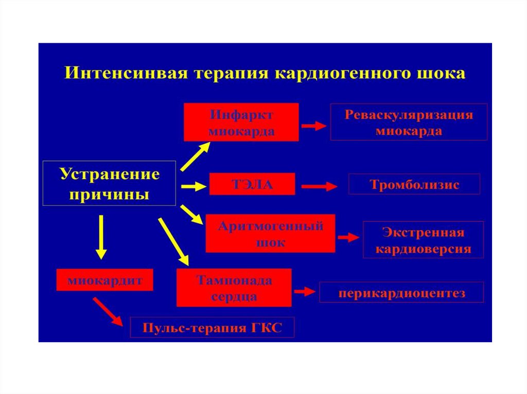 3. Инотропная поддержка. В случае развития истинного кардиогенного шока,