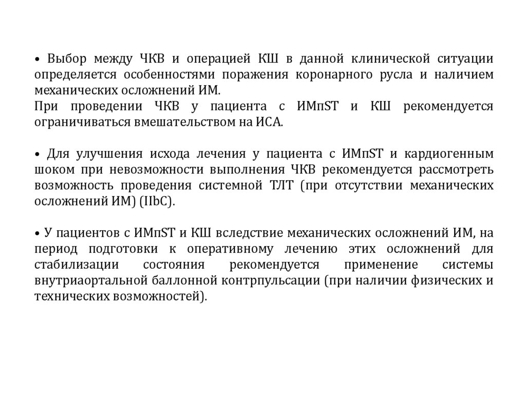 • У пациентов с ИМпST и КШ вследствие механических осложнений ИМ, на