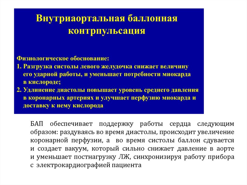 внутриаортальной баллонной контрпульсации (при наличии физических и