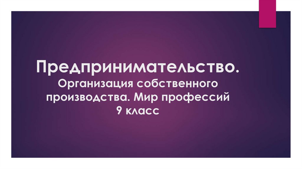 1. Предпринимательство. Организация собственного производства. Мир профессий 9 класс