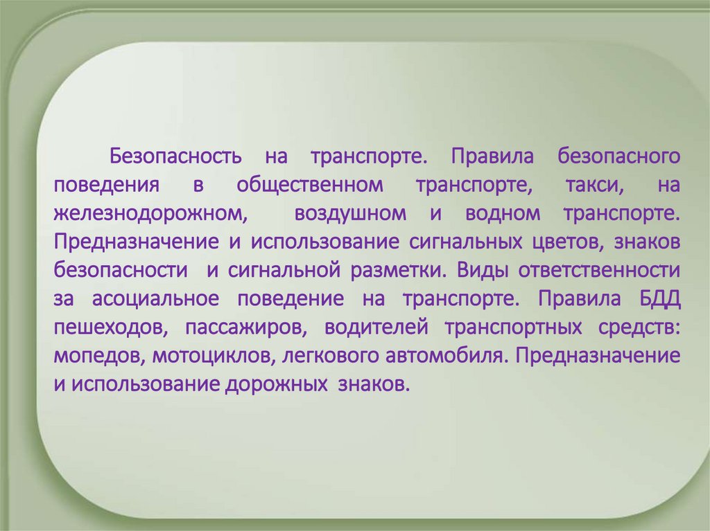 1) Правила безопасного поведения в общественном транспорте,такси, на железнодорожном, воздушном и водном транспорте