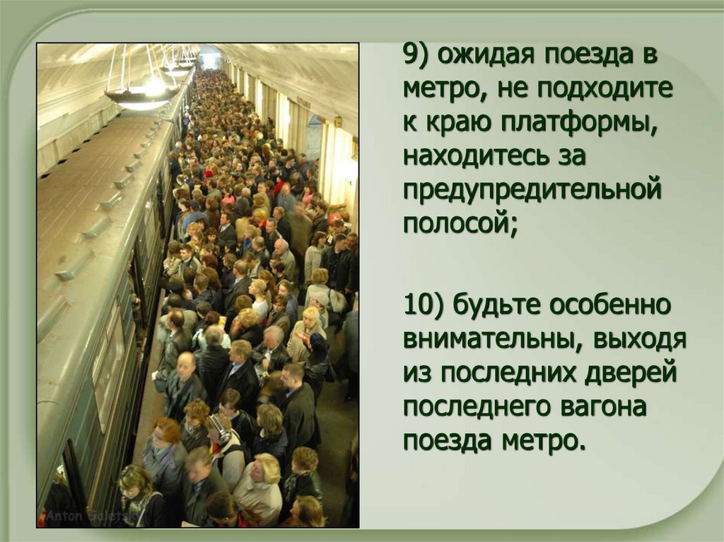 19. 7) никогда не садитесь на ступени движущегося эскалатора; 8) если вы спешите, двигайтесь по эскалатору спокойно, держась за