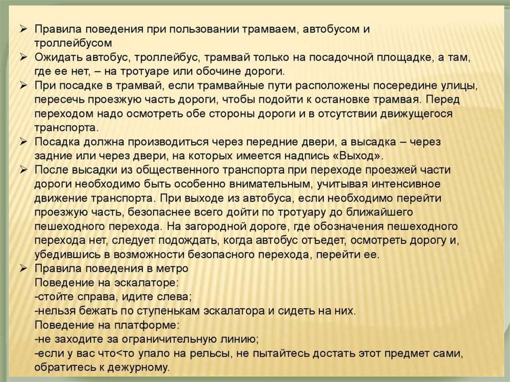 Безопасность на транспорте. Правила безопасногоповедения в общественном транспорте, такси, на