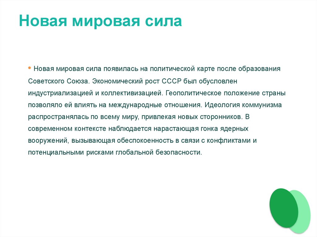 Новая мировая сила• Новая мировая сила появилась на политической карте после образования