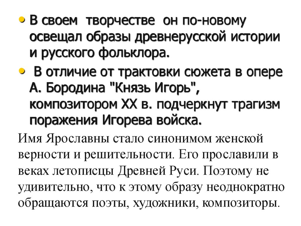 • В своем творчестве он по-новомуосвещал образы древнерусской истории