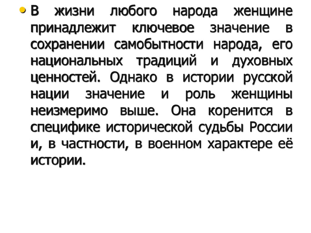 • В жизни любого народа женщинепринадлежит ключевое значение в