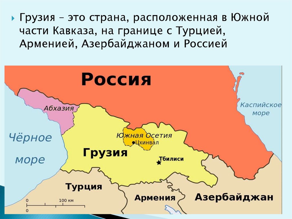 Грузия – это страна, расположенная в Южнойчасти Кавказа, на границе с Турцией,