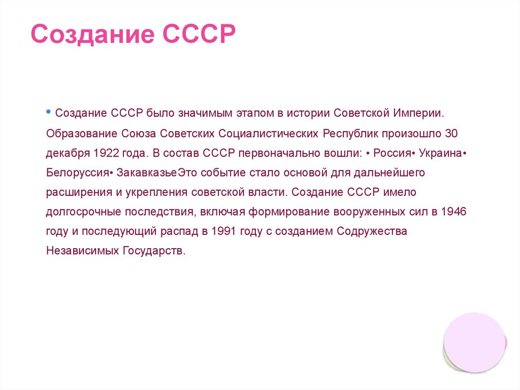 Создание СССР• Создание СССР было значимым этапом в истории Советской Империи.