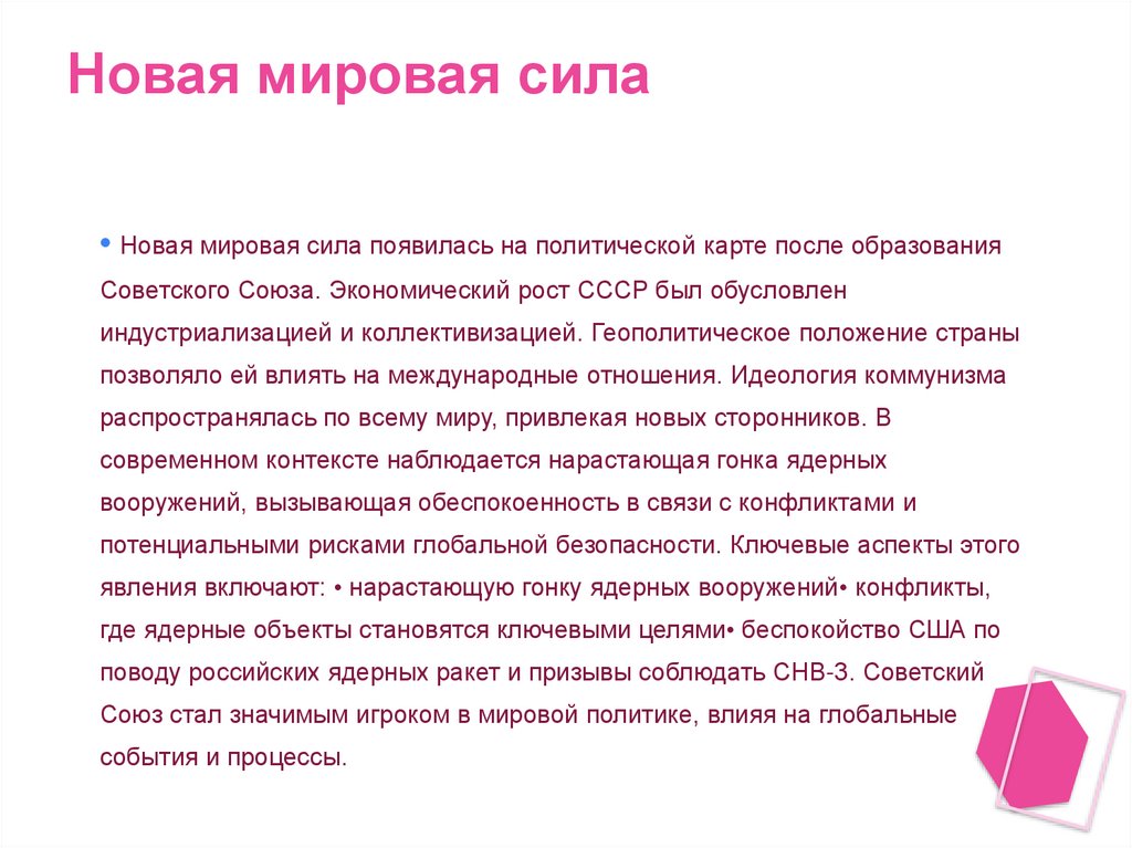 Новая мировая сила• Новая мировая сила появилась на политической карте после образования