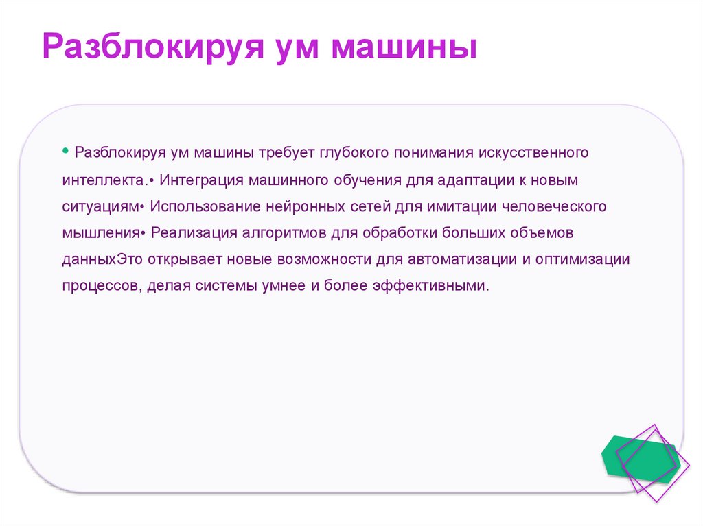 Разблокируя ум машины• Разблокируя ум машины требует глубокого понимания искусственного