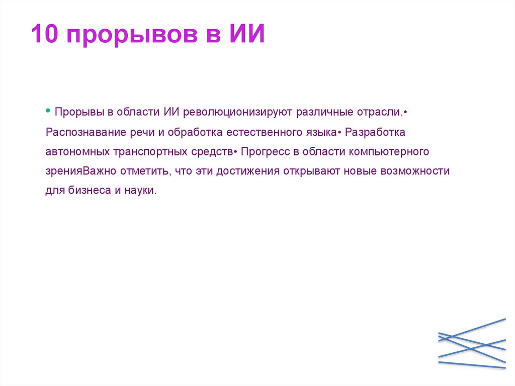 10 прорывов в ИИ• Прорывы в области ИИ революционизируют различные отрасли.