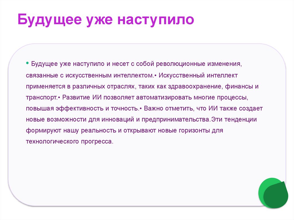 Будущее уже наступило• Будущее уже наступило и несет с собой революционные изменения,