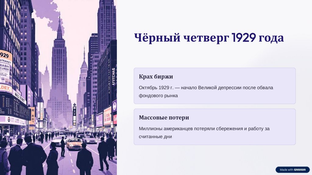 Октябрь 1929 г. — начало Великой депрессии после обвала