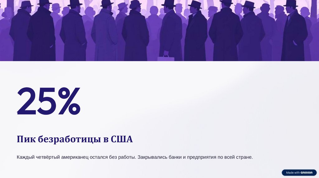 Каждый четвёртый американец остался без работы. Закрывались банки и предприятия по всей стране.