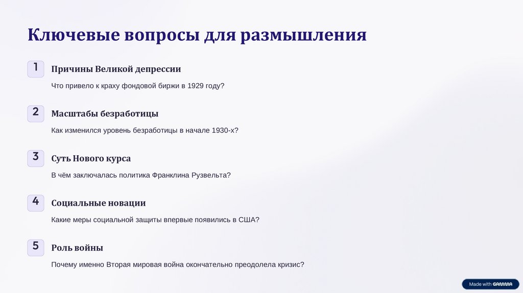 Ключевые вопросы для размышления1