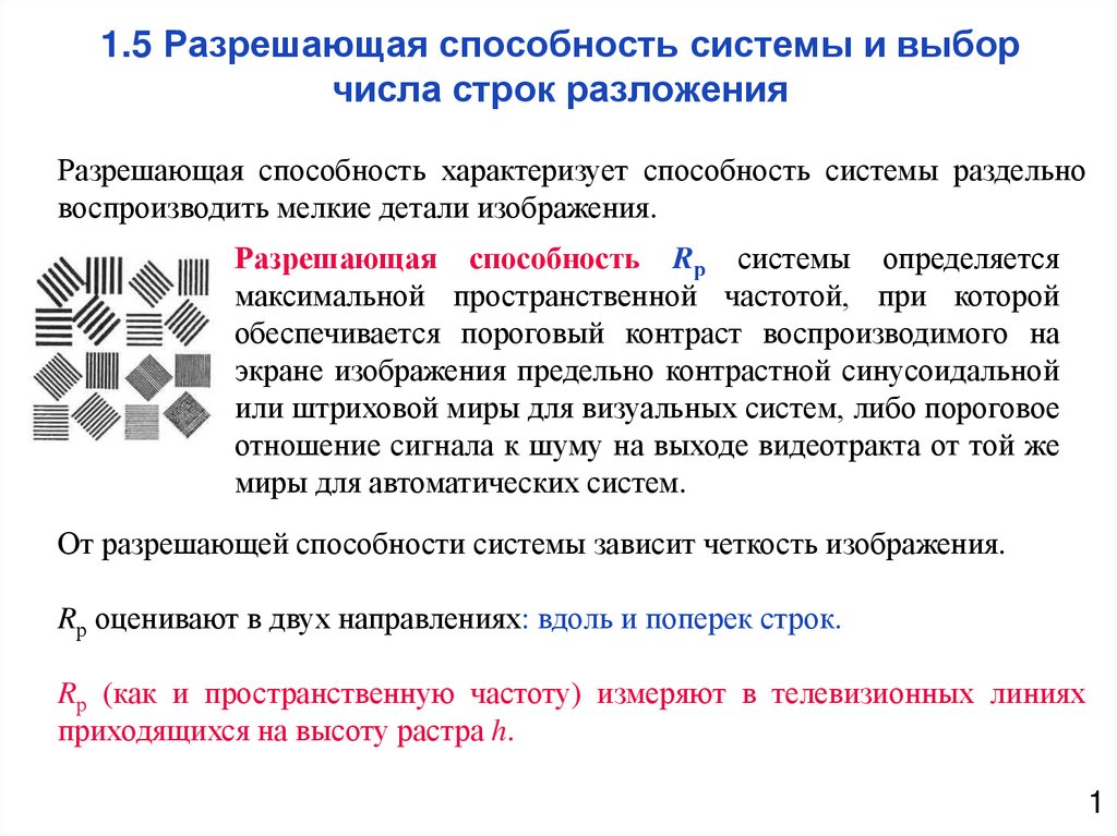 1. 1.5 Разрешающая способность системы и выбор числа строк разложения
