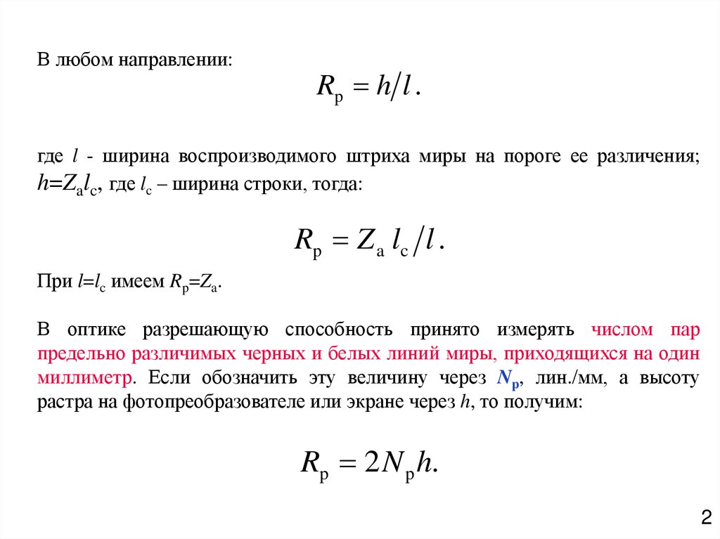 Rр (как и пространственную частоту) измеряют в телевизионных линиях