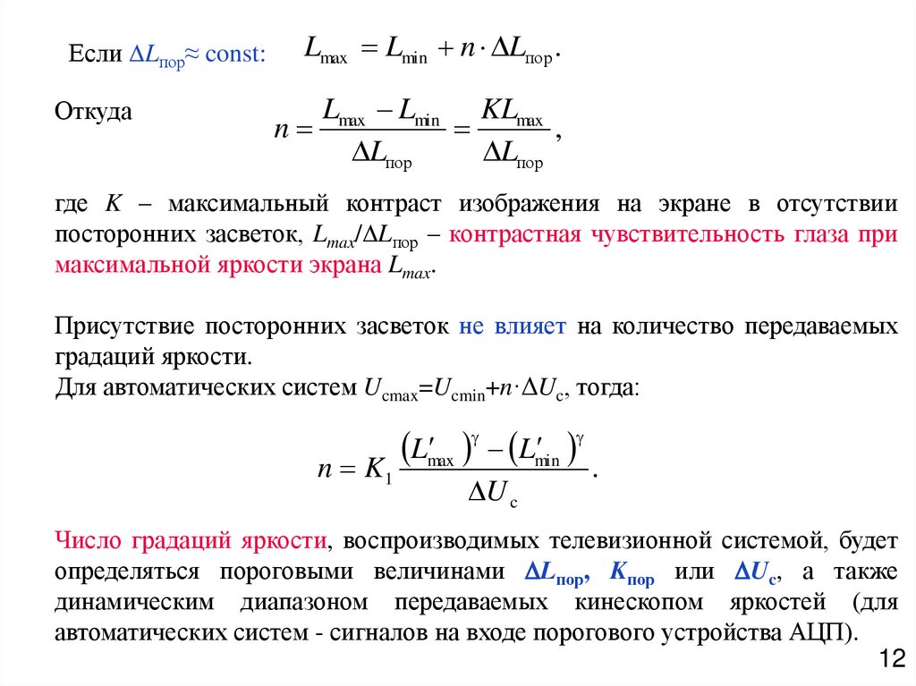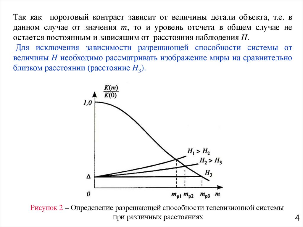 Так как пороговый контраст зависит от величины детали объекта, т.е. вданном случае от значения m, то и уровень отсчета в общем случае не