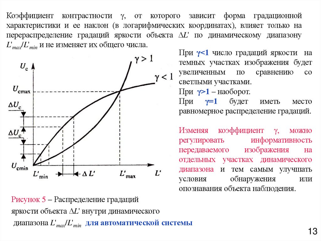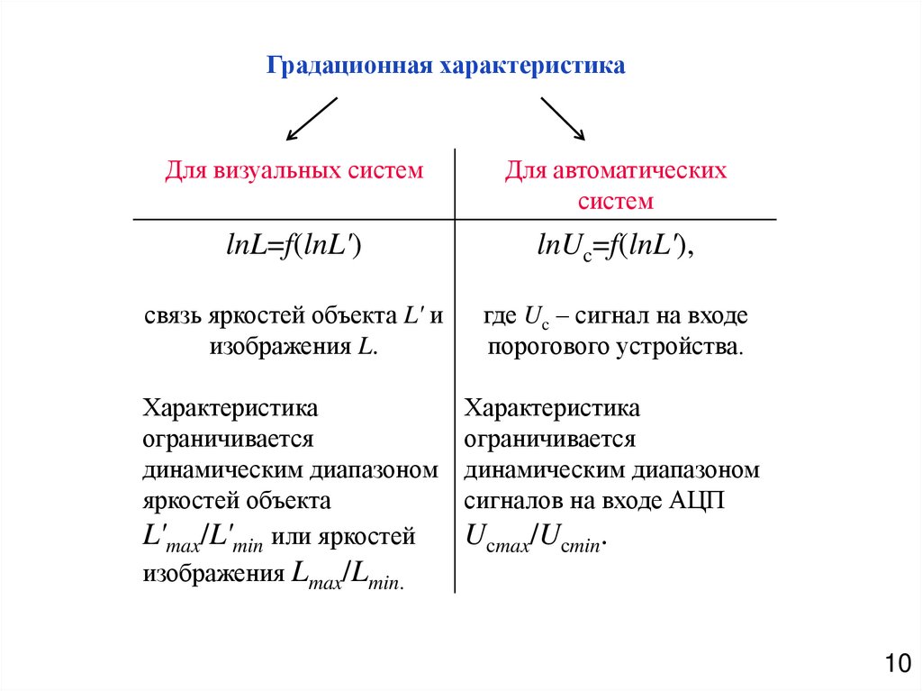 • условия обнаружения отдельных деталей изображения объекта.