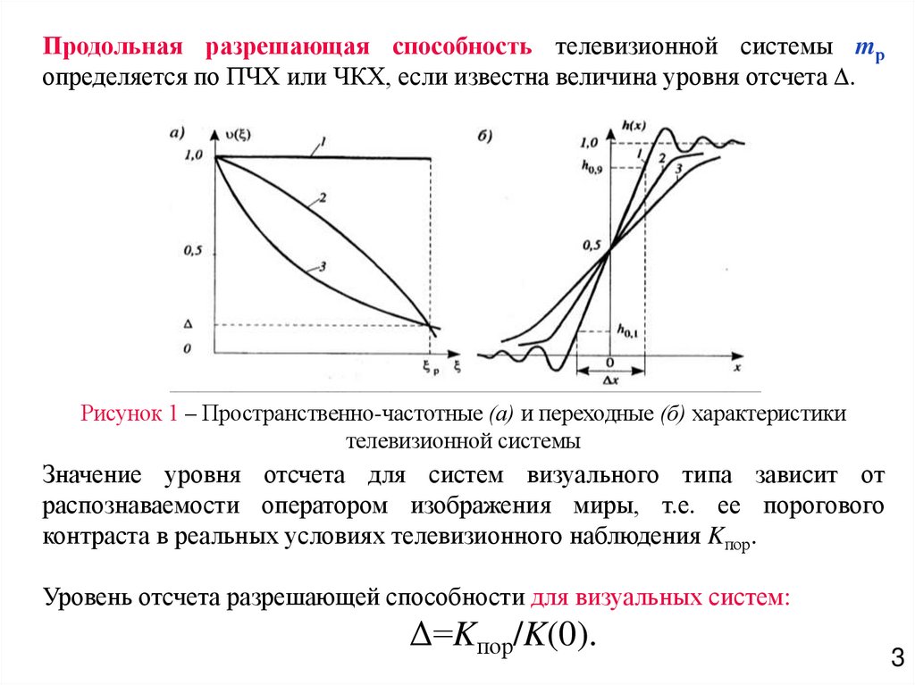 Продольная разрешающая способность телевизионной системы mропределяется по ПЧХ или ЧКХ, если известна величина уровня отсчета .