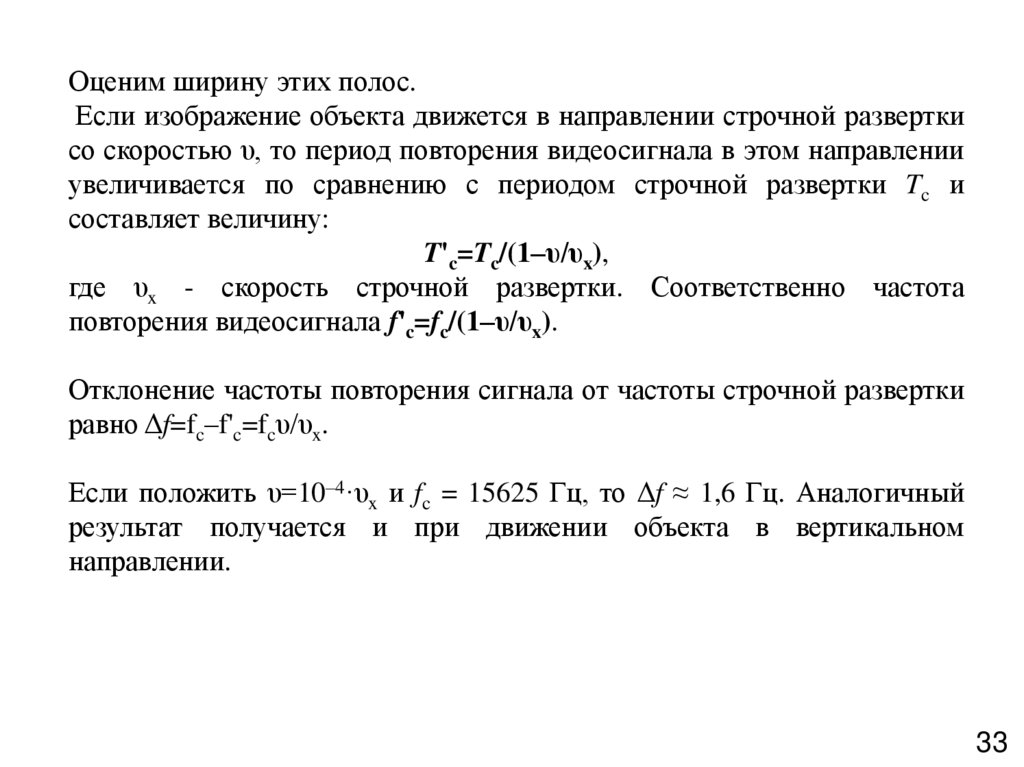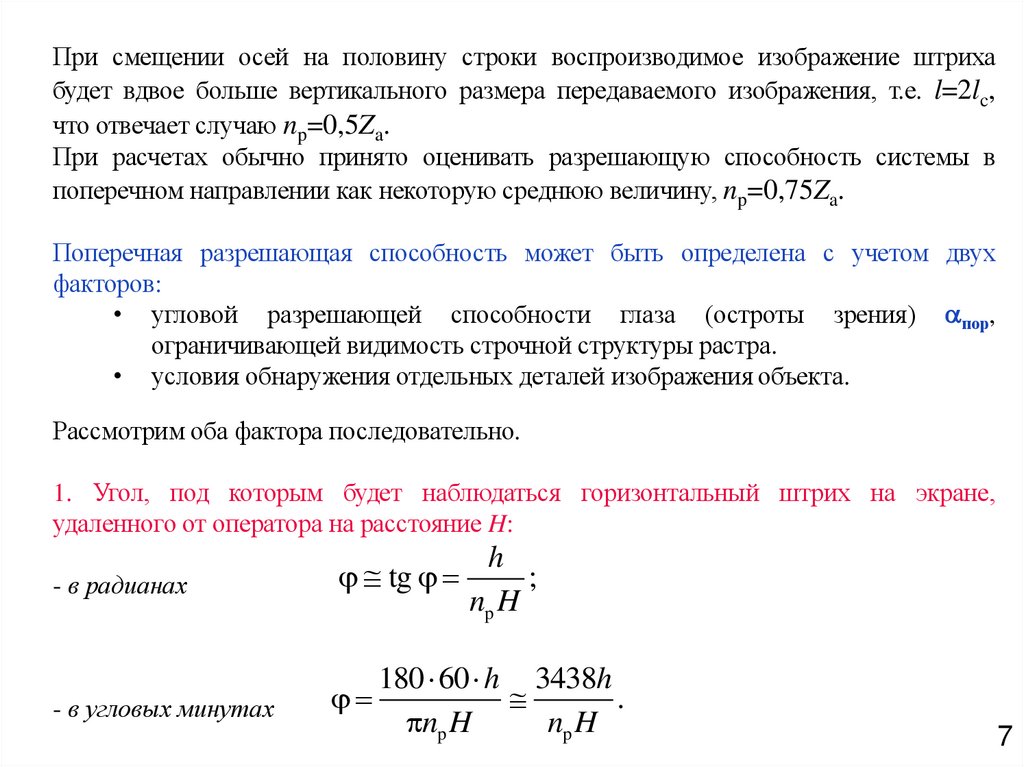 При смещении осей на половину строки воспроизводимое изображение штрихабудет вдвое больше вертикального размера передаваемого изображения, т.е. l=2lc,