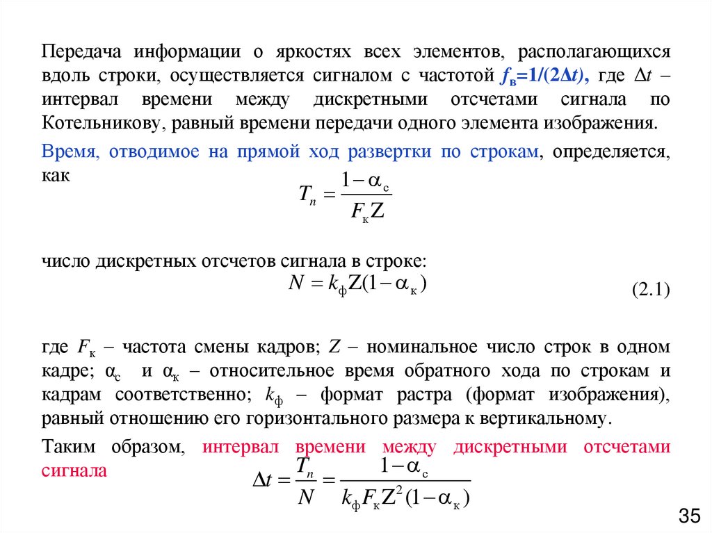кадре; αc и αк – относительное время обратного хода по строкам и