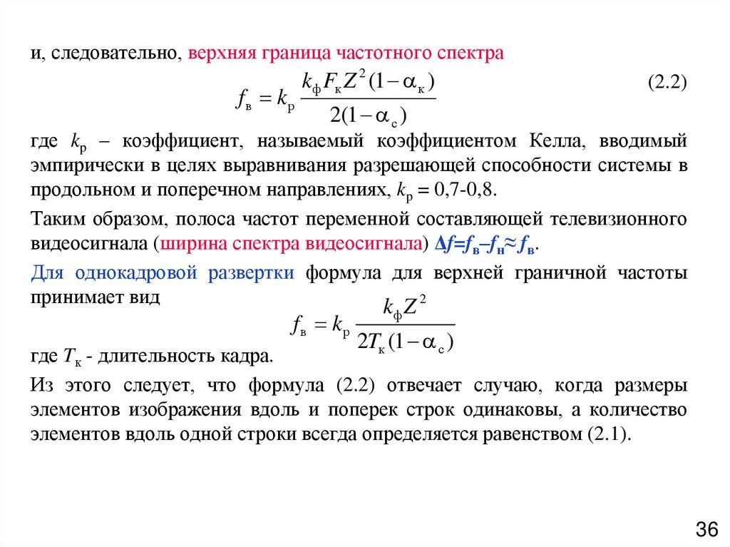 Для однокадровой развертки формула для верхней граничной частоты