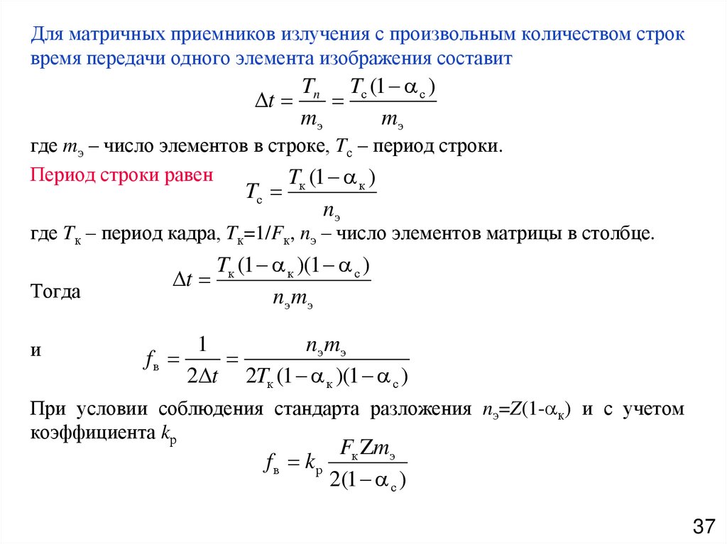 Для матричных приемников излучения с произвольным количеством строквремя передачи одного элемента изображения составит
