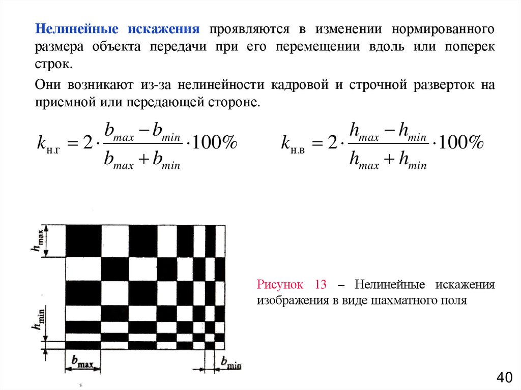 Нелинейные искажения проявляются в изменении нормированногоразмера объекта передачи при его перемещении вдоль или поперек