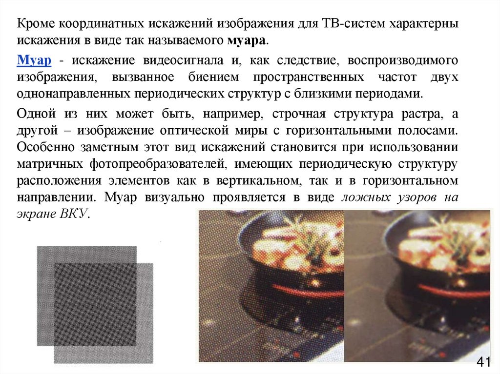 Кроме координатных искажений изображения для ТВ-систем характерныискажения в виде так называемого муара.