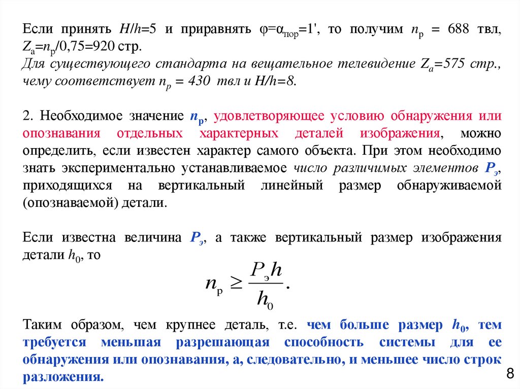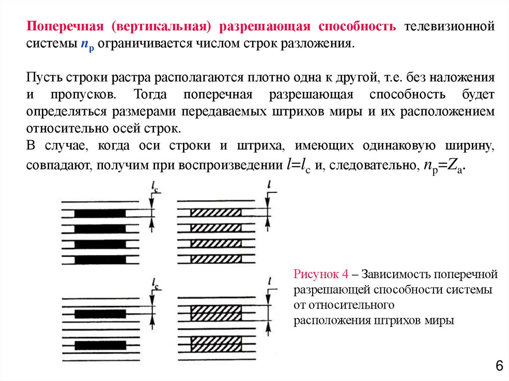 Поперечная (вертикальная) разрешающая способность телевизионнойсистемы np ограничивается числом строк разложения.