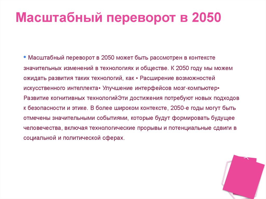 Масштабный переворот в 2050• Масштабный переворот в 2050 может быть рассмотрен в контексте