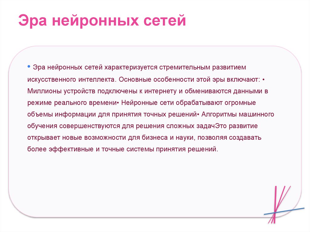 искусственного интеллекта. Основные особенности этой эры включают: