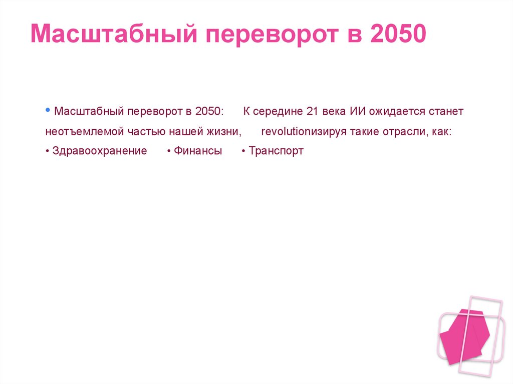 Масштабный переворот в 2050• Масштабный переворот в 2050: