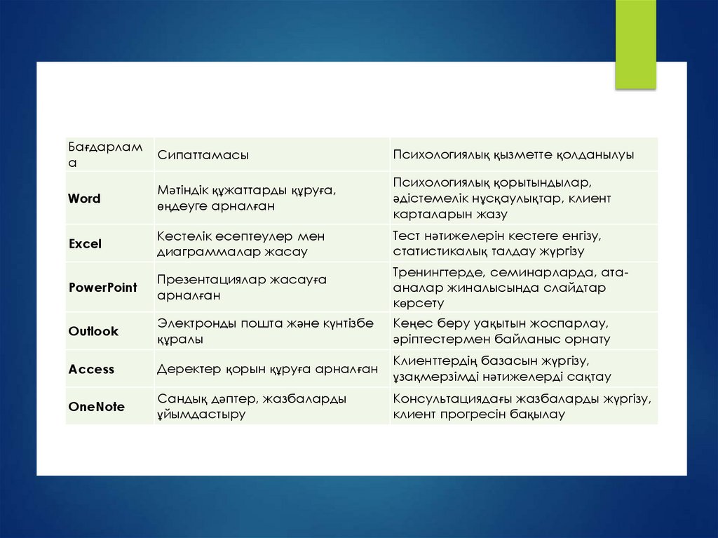 Педагог-психолог ісәрекетінде қолданылатынбағдарламалық