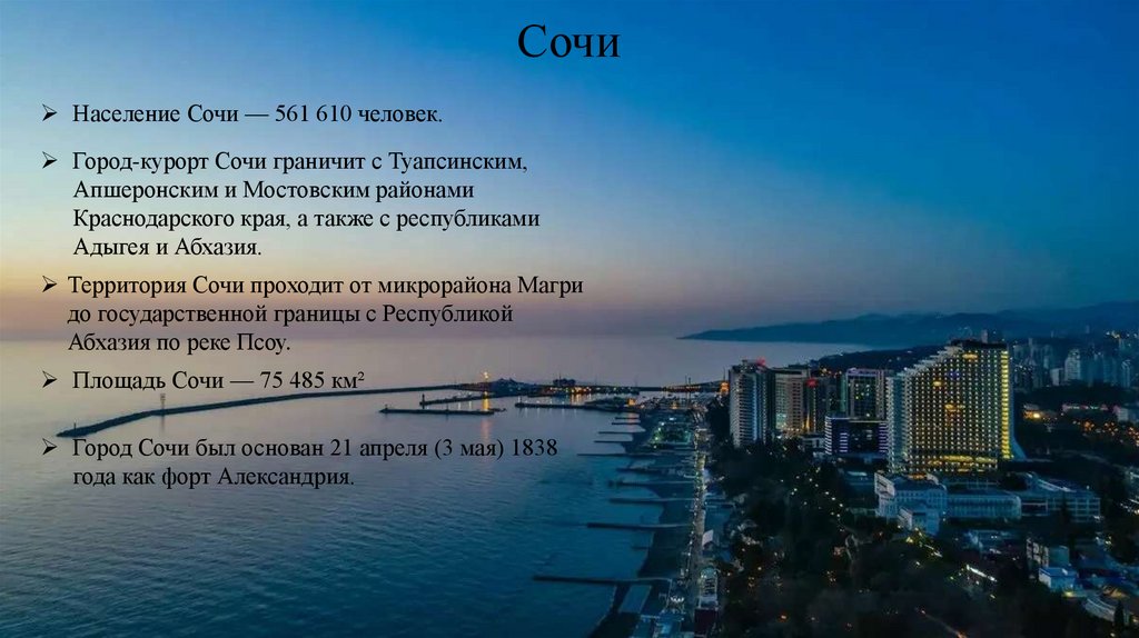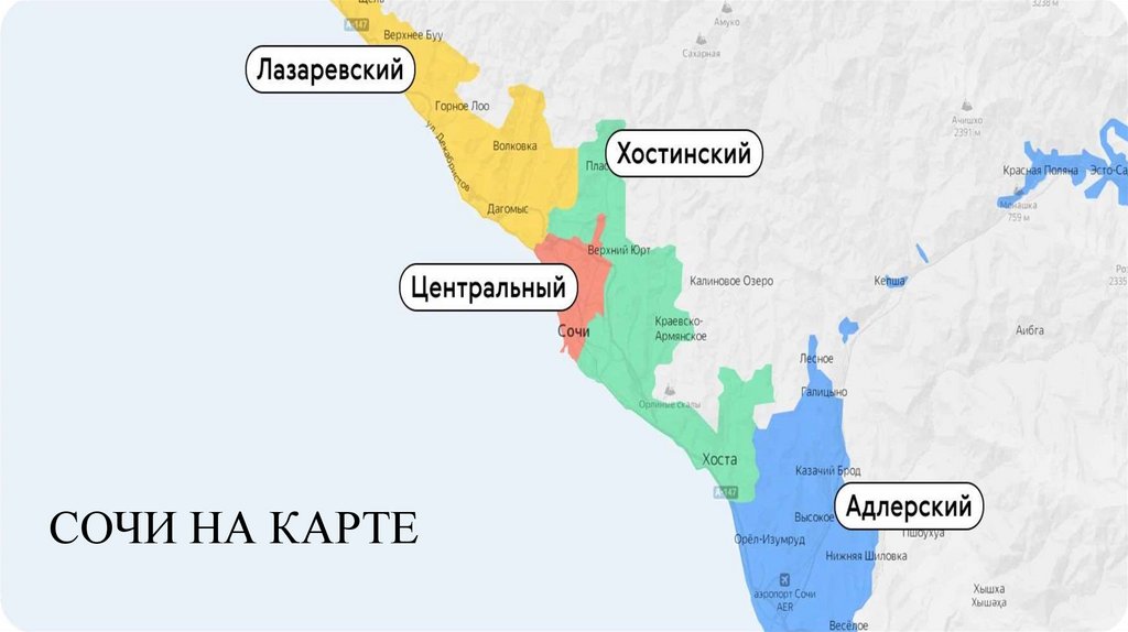 района: Адлерский, Хостинский, Центральный и Лазаревский.