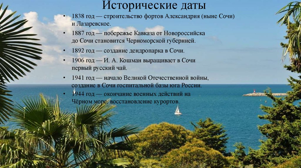 • 1838 год — строительство фортов Александрия (ныне Сочи)