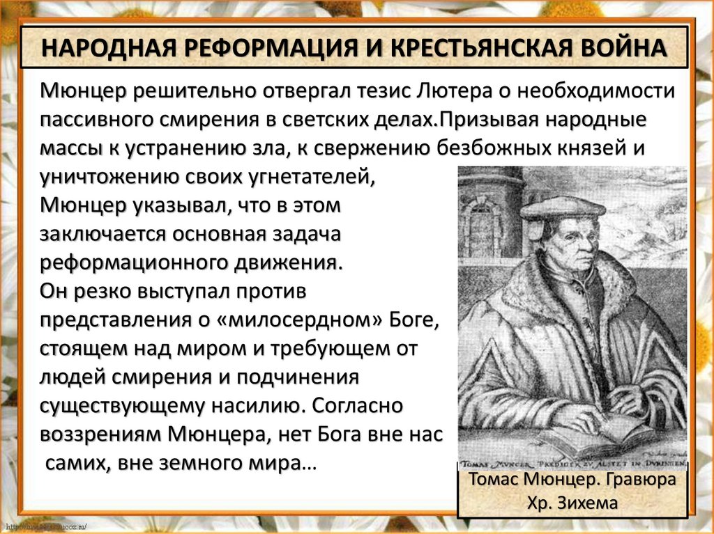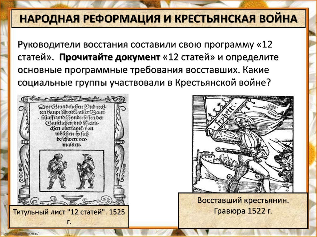 НАРОДНАЯ РЕФОРМАЦИЯ И КРЕСТЬЯНСКАЯ ВОЙНАРуководители восстания составили свою программу «12