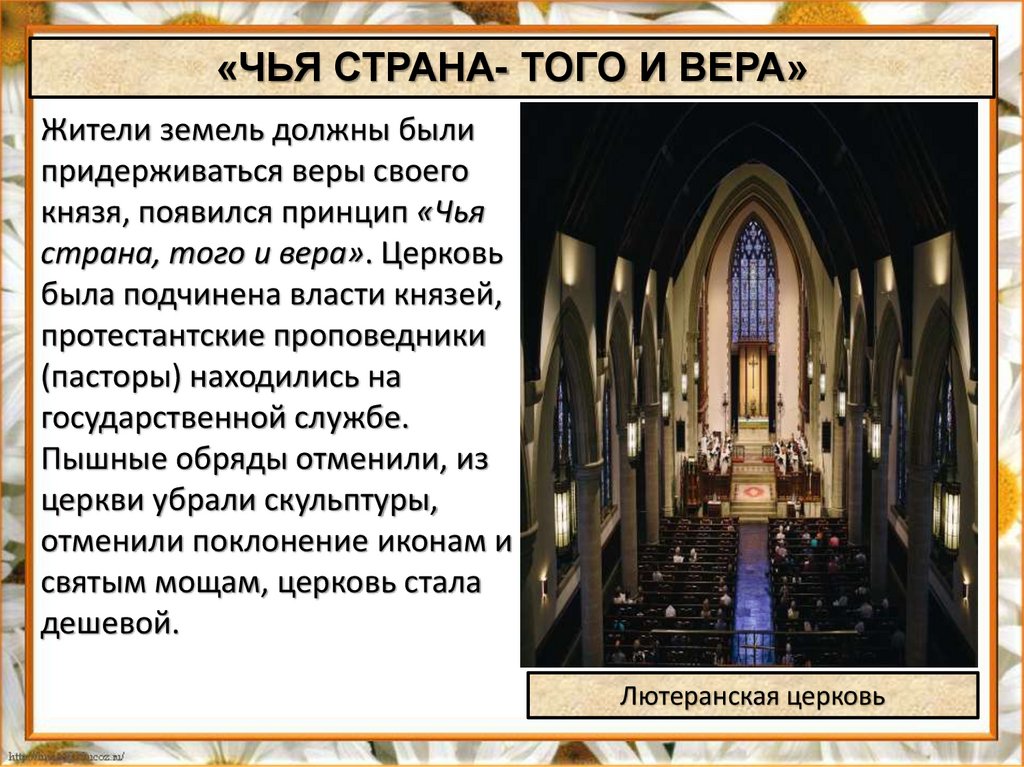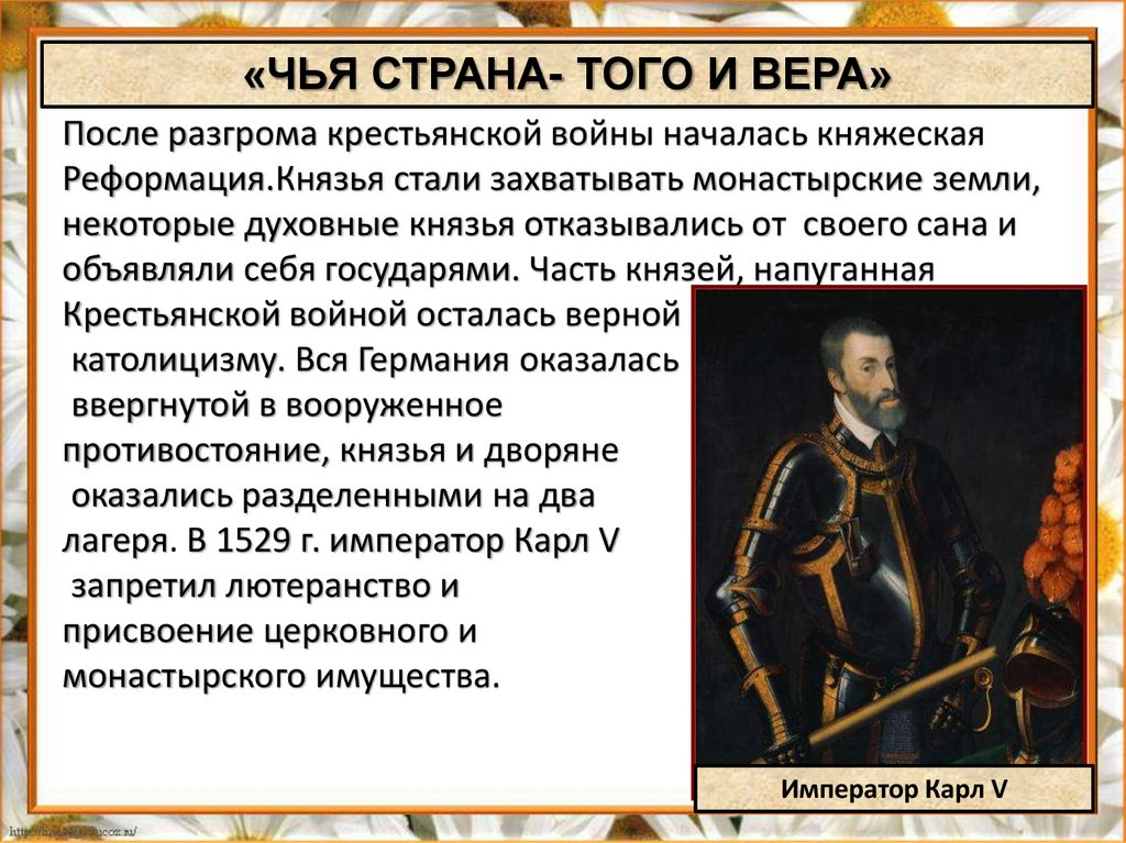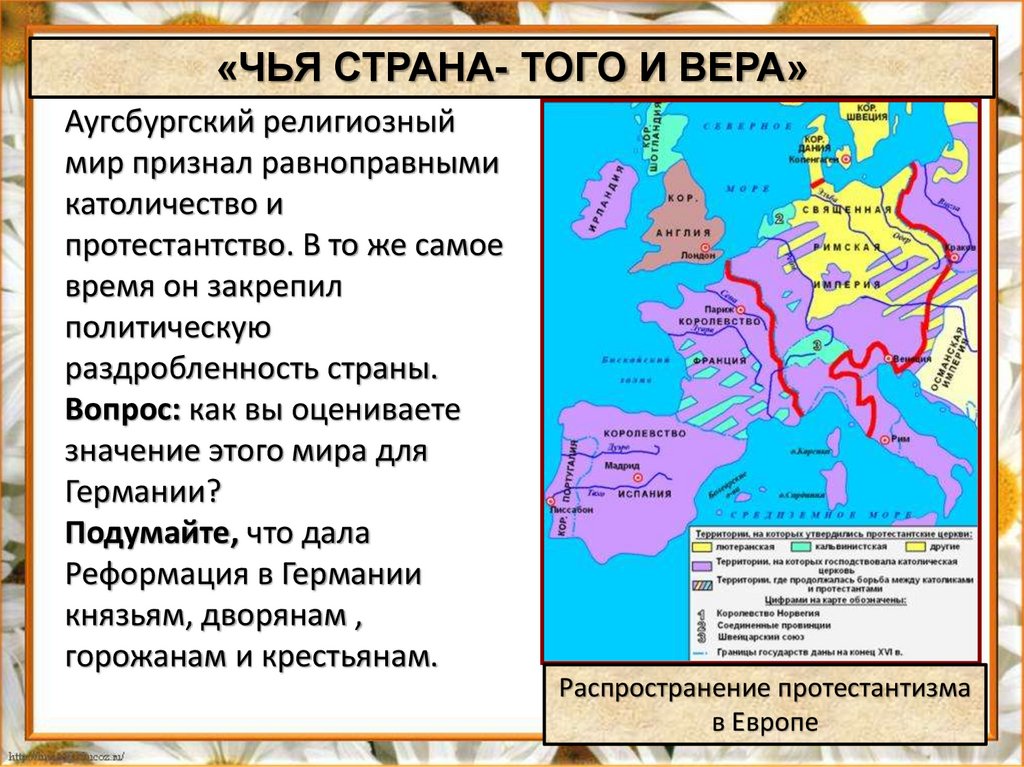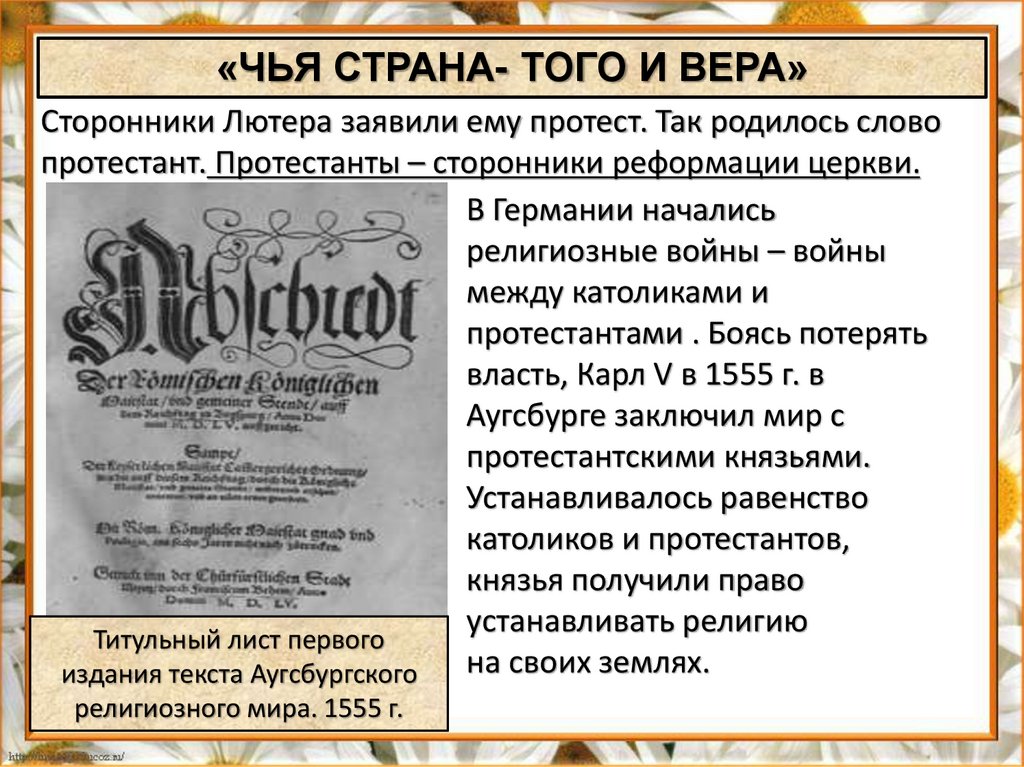 «ЧЬЯ СТРАНА- ТОГО И ВЕРА»Аугсбургский религиозный