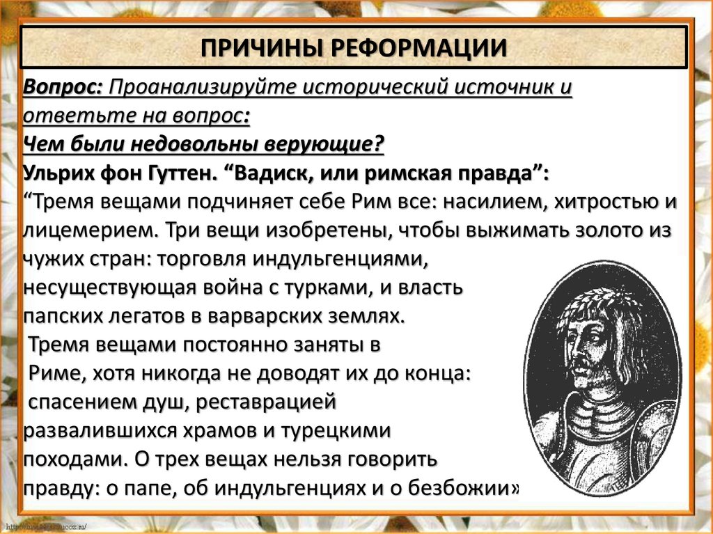 ПРИЧИНЫ РЕФОРМАЦИИВопрос: Проанализируйте исторический источник и