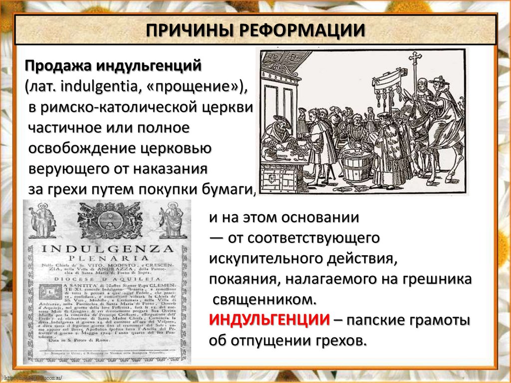 ПРИЧИНЫ РЕФОРМАЦИИПродажа индульгенций