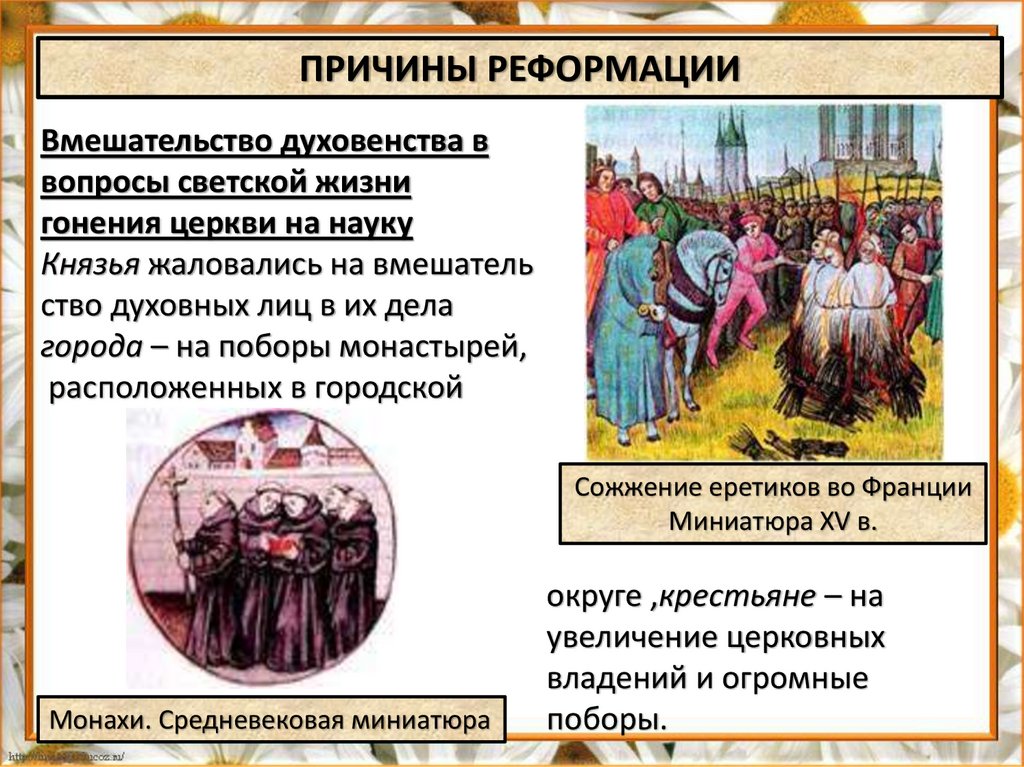 ПРИЧИНЫ РЕФОРМАЦИИВмешательство духовенства в