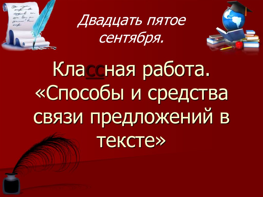 1. Классная работа. «Способы и средства связи предложений в тексте»