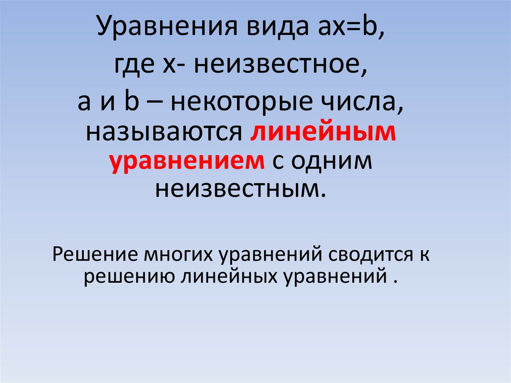 Корнем уравнения называется тозначение неизвестного, при котором это