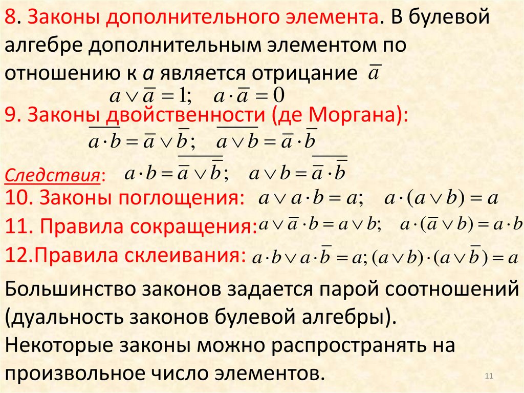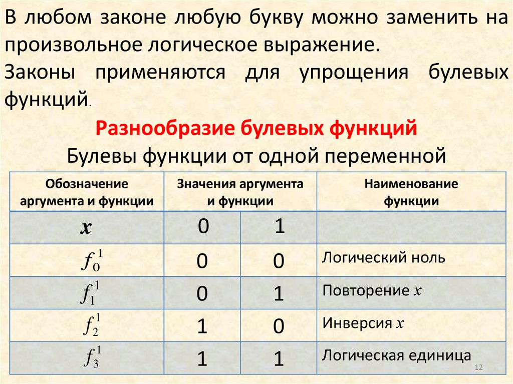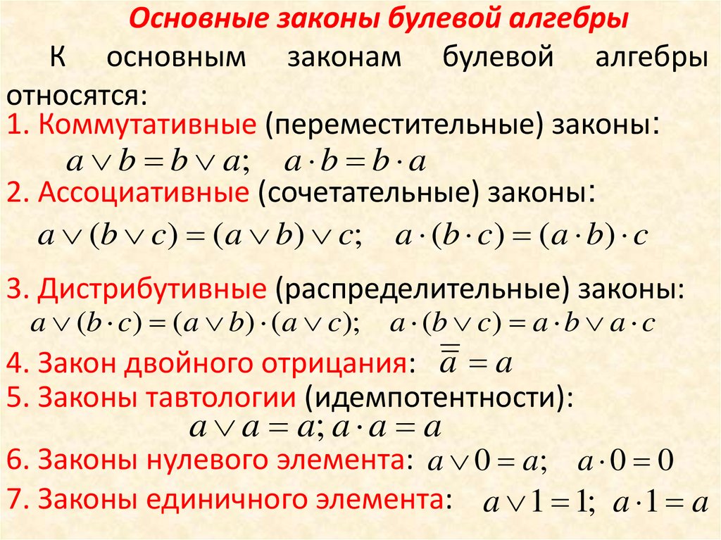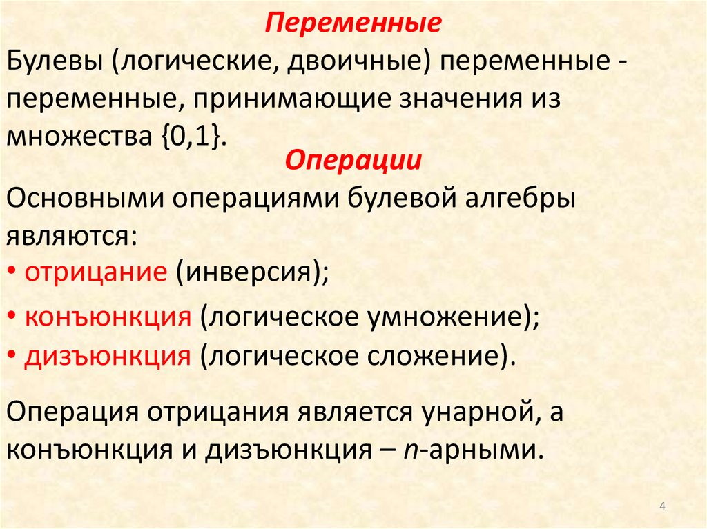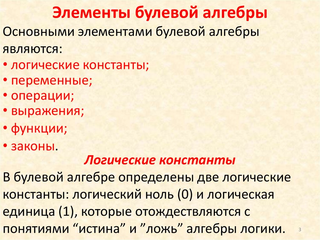 Элементы булевой алгебрыОсновными элементами булевой алгебры