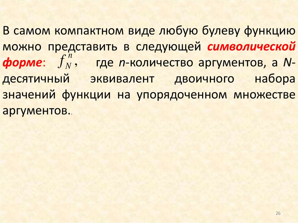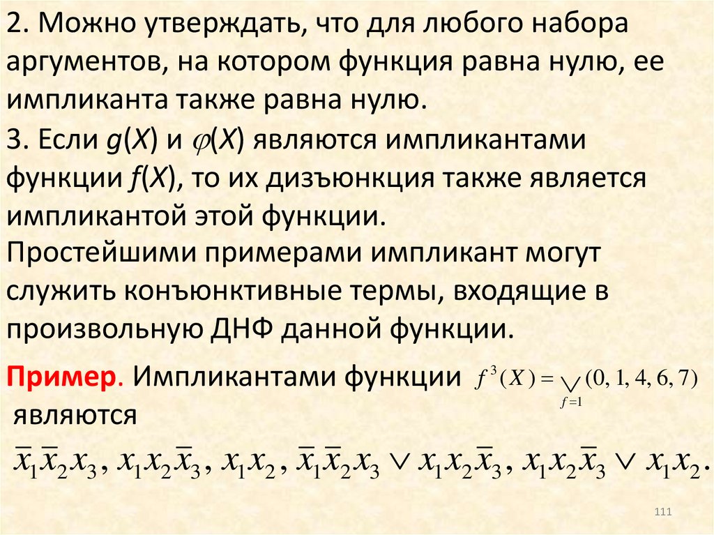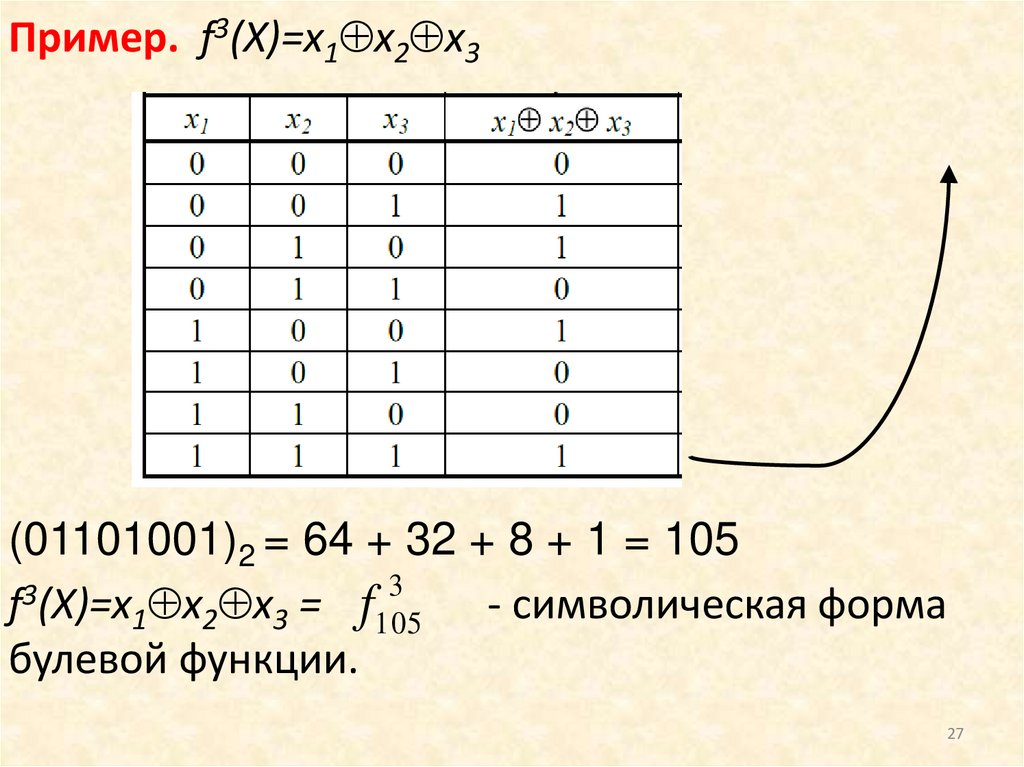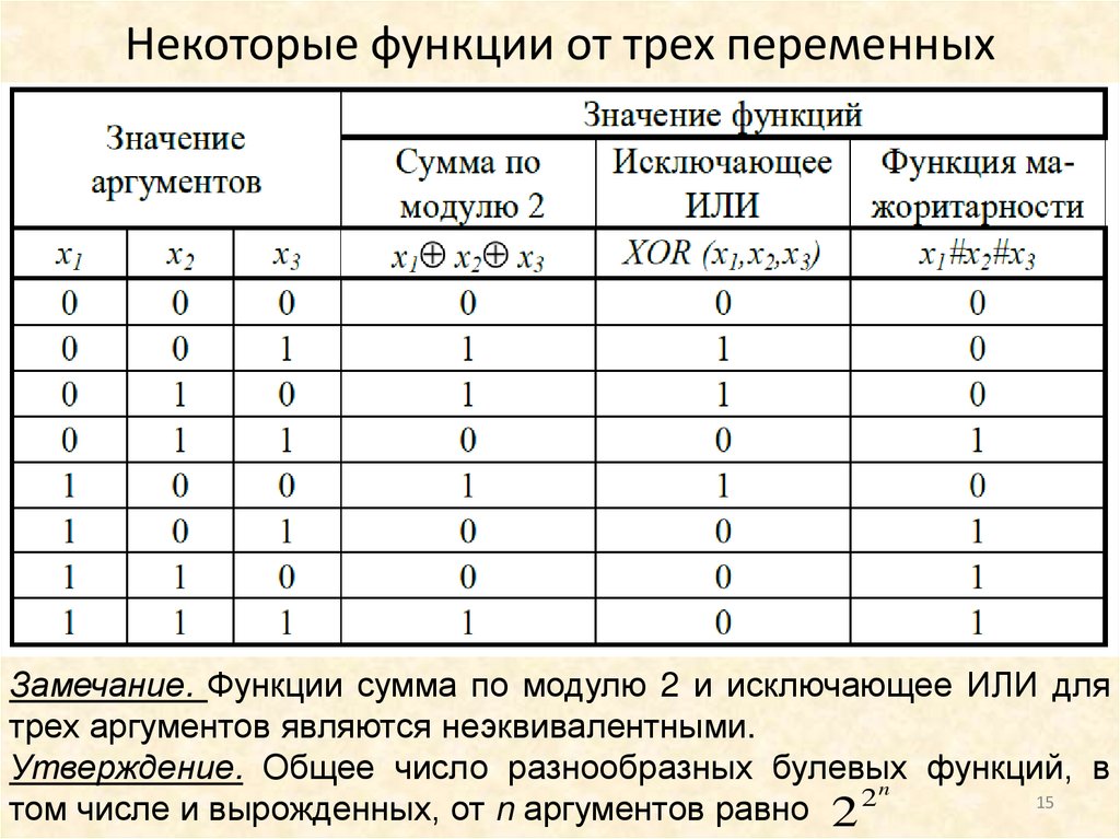 Набор аргументов можно рассматривать как nкомпонентный двоичный вектор.