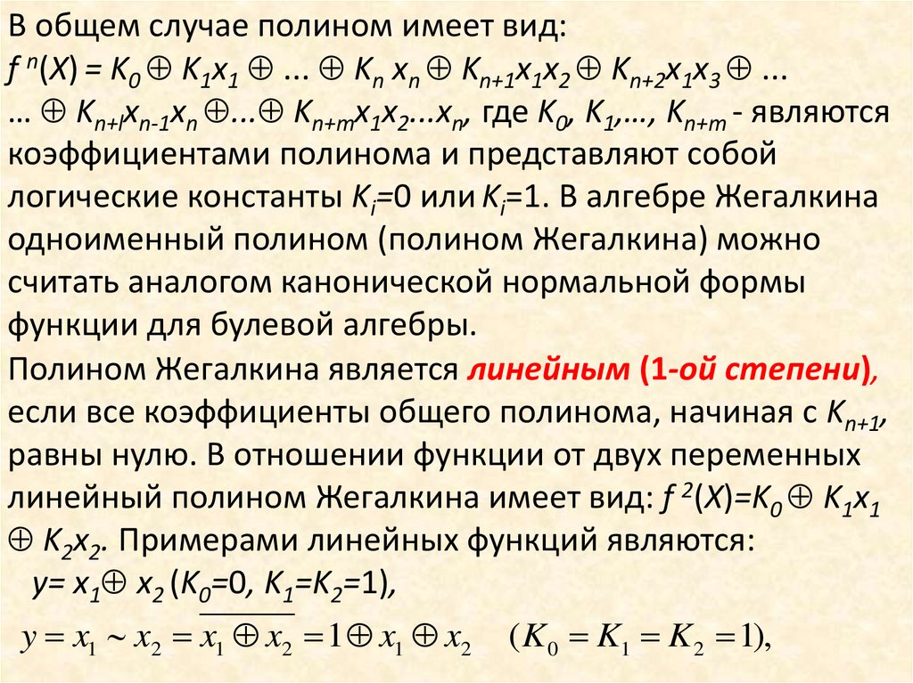логические константы Ki=0 или Ki=1. В алгебре Жегалкина