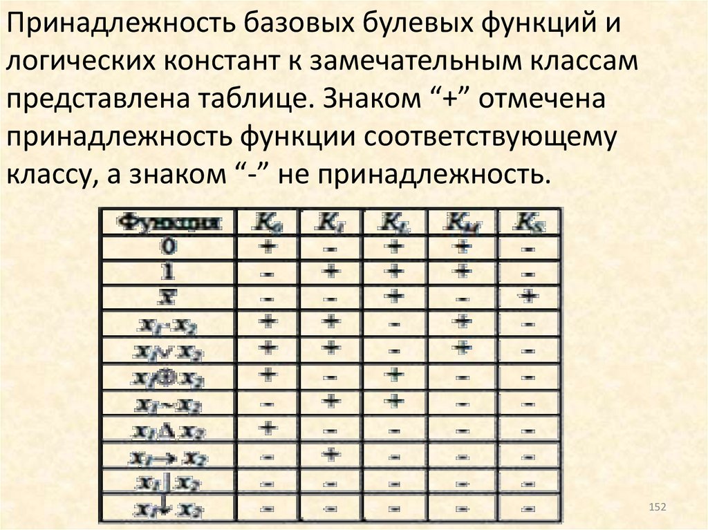 Принадлежность базовых булевых функций илогических констант к замечательным классам