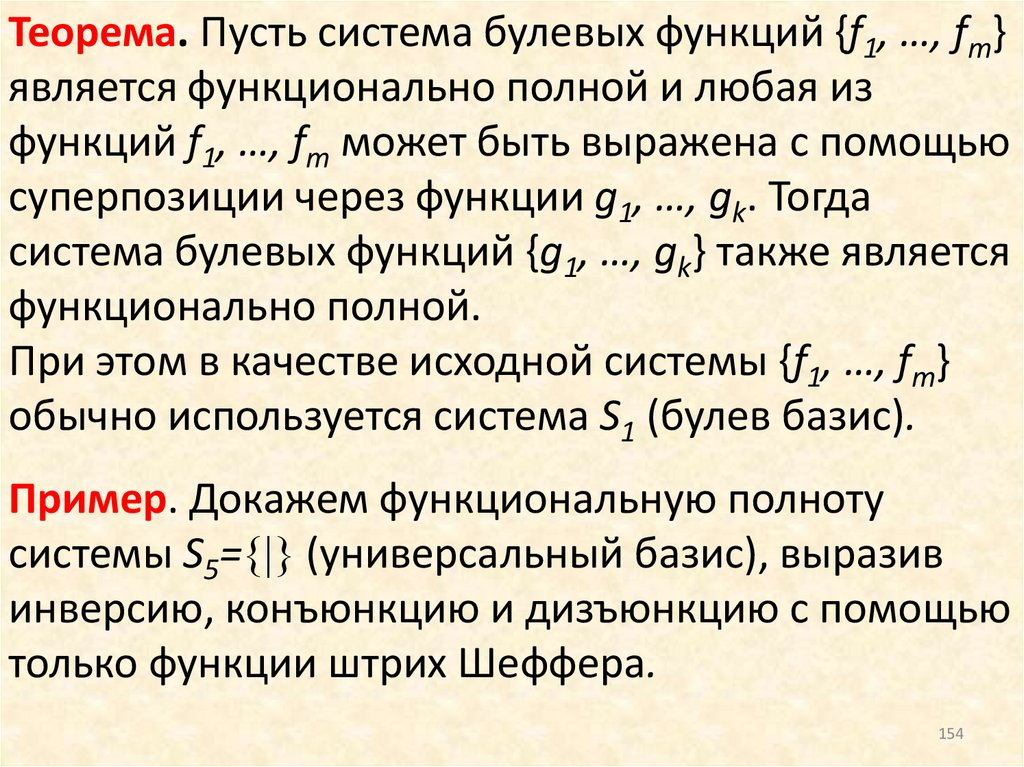 Теорема. Пусть система булевых функций {f1, …, fm}является функционально полной и любая из