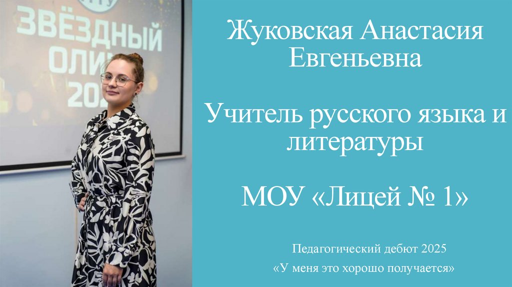 1. Жуковская Анастасия Евгеньевна Учитель русского языка и литературы МОУ «Лицей № 1»